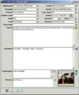 XMP-Format in den Header. Die Vorteile: - Die Daten, die mit CaptionWriter II abgespeichert werden, sind in jeder Hinsicht konform mit den Photoshop©-Dateiinformationen. - Der CaptionWriter II wird damit schon Heute zukünftigen Entwicklungen bei Archivsystemen gerecht. Bilder, die mit